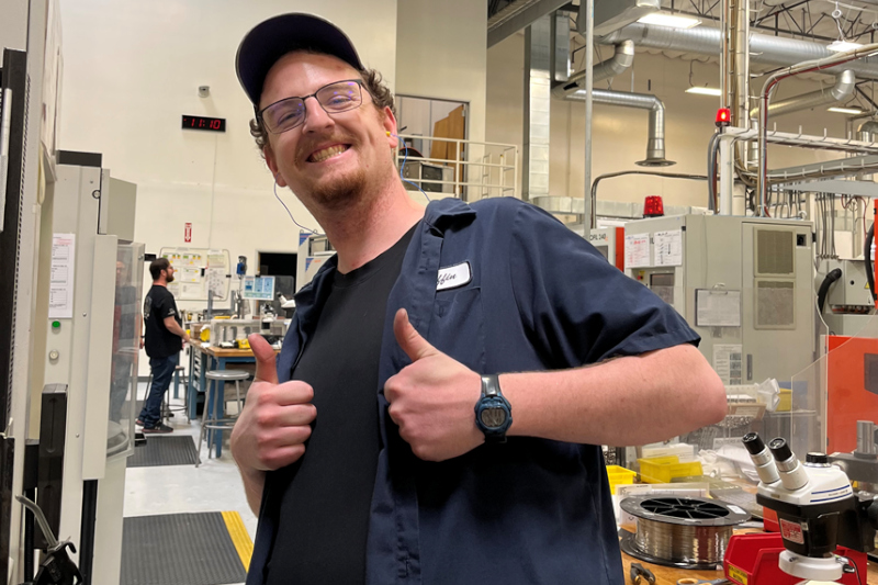 Griffin Siroky, de 26 años, ha progresado significativamente en su lugar de trabajo, Classic Wire Cut, desde ser contratado como operador de máquina CNC poco después de graduarse desde el Uniquely Abled Academy (UAA).