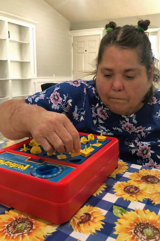 Entonces, cuando llegó el COVID-19, Debbie estaba bien preparada para manejarlo. Hizo la transición de muchas de sus actividades habituales al interior o a un área al aire libre donde podía distanciarse socialmente. Ahora sus días están llenos de rompecabezas, pintando, cantando, bailando y lavando su propia ropa. Su persona de apoyo, Ingrid, comentó que cuando Debbie canta, «es toda una sesión de concierto». Su música favorita para tocar y cantar es la música country. Ella hace sus caminatas diarias y también juega fútbol. Debbie también ha estado encontrando programas interesantes en la televisión para mantenerse entretenida. Además, la familia ha sido un aspecto importante en la vida de Debbie, especialmente ahora. Debbie habla con su mamá todos los días y juntas almuerzan todas las semanas.