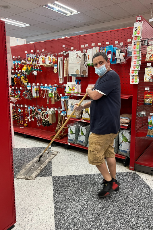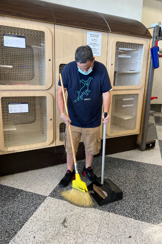 Eddie ha trabajado en Petco durante más de 20 años y ha sido un empleado dedicado y trabajador desde el primer día. Hoy en día, sus tareas diarias incluyen quitar el polvo, barrer, trapear, limpiar las mesas y sacar la basura. Eddie siempre cumple con los requisitos de su trabajo con precisión y atención al detalle y es un empleado modelo para los nuevos empleados. ¡Sin mencionar a aquellos que han sido empleados durante mucho tiempo!