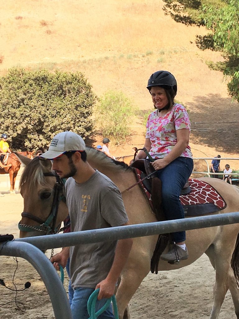 After sharing this with the circle at one of the monthly circle meetings, the staff learned how Jennie used to attend a horseback riding program out in Santa Clarita. However, the stable burned down and never re-opened. The circle brainstormed how to give Jennie the opportunity to ride again and CSS Brenda mentioned that she knew of someone else that participate in therapeutic horseback riding with Ride-On in Chatsworth. She looked to see if they were accepting new riders and fortunately the Newberry Park Ride-On had availability during the weekends. Perfect! This worked best for Jennie’s schedule considering she drove an hour (and sometimes more) to get to her lessons on Saturday mornings.
